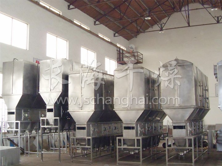 潔凈的熱風(fēng)經(jīng)閥板分配進入床體內(nèi),從加料器進入的濕物料被熱風(fēng)形成沸騰狀態(tài)。由于熱風(fēng)與物料廣泛接觸,增強了傳熱傳質(zhì)的過程,因此在較短時間內(nèi)就可干燥。如用連續(xù)型,物料從床體的一頭進入,經(jīng)過幾十秒至幾分鐘沸騰干燥,自動從床體另一頭流出。本設(shè)備一般進行負壓操作。